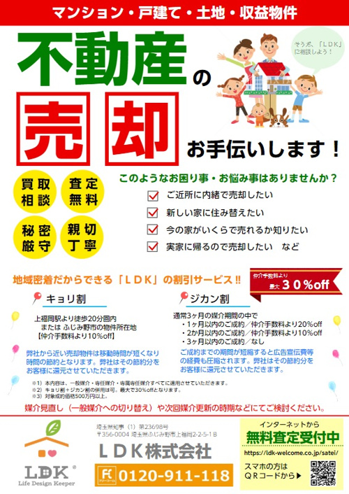 ふじみ野市・上福岡駅周辺の不動産の売却は「LDK株式会社」へおまかせください!